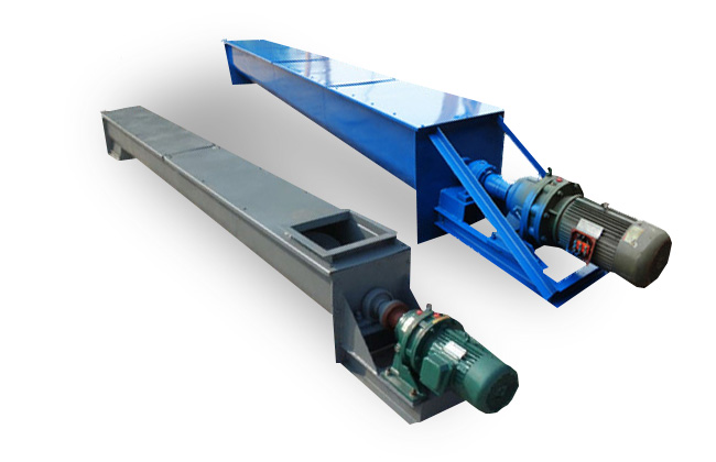 U型螺旋輸送機工作時,電機帶動旋轉(zhuǎn)的螺旋葉片將物料推移而進行輸送,螺旋輸送機旋轉(zhuǎn)軸上焊的螺旋葉片,葉片的面型根據(jù)輸送物料的不同有實體面型、帶式面型、葉片面型等型式。使物料不與螺旋輸送機葉片一起旋轉(zhuǎn)的力是物料自身重量和螺旋輸送機機殼對物料的摩擦阻力。